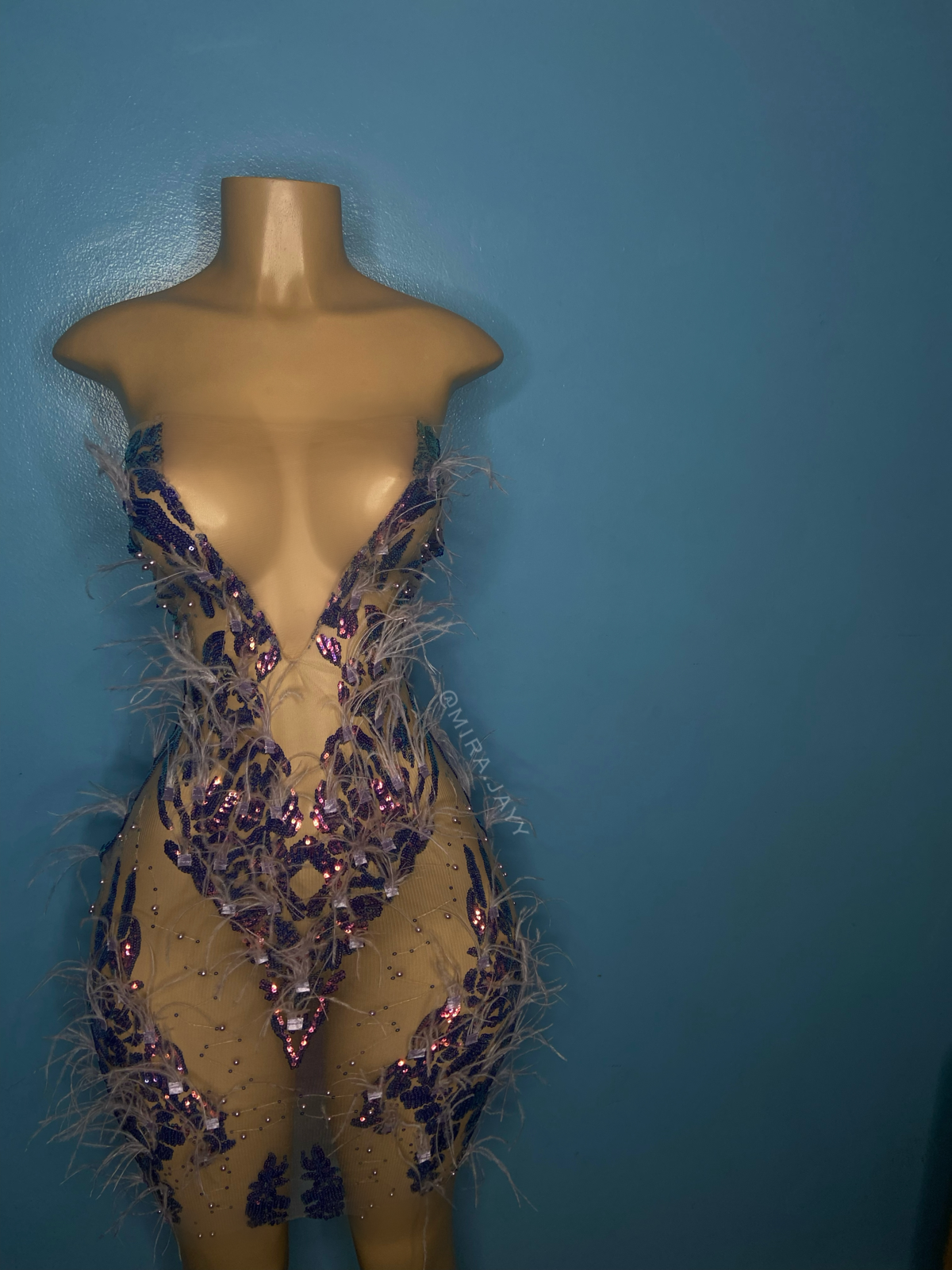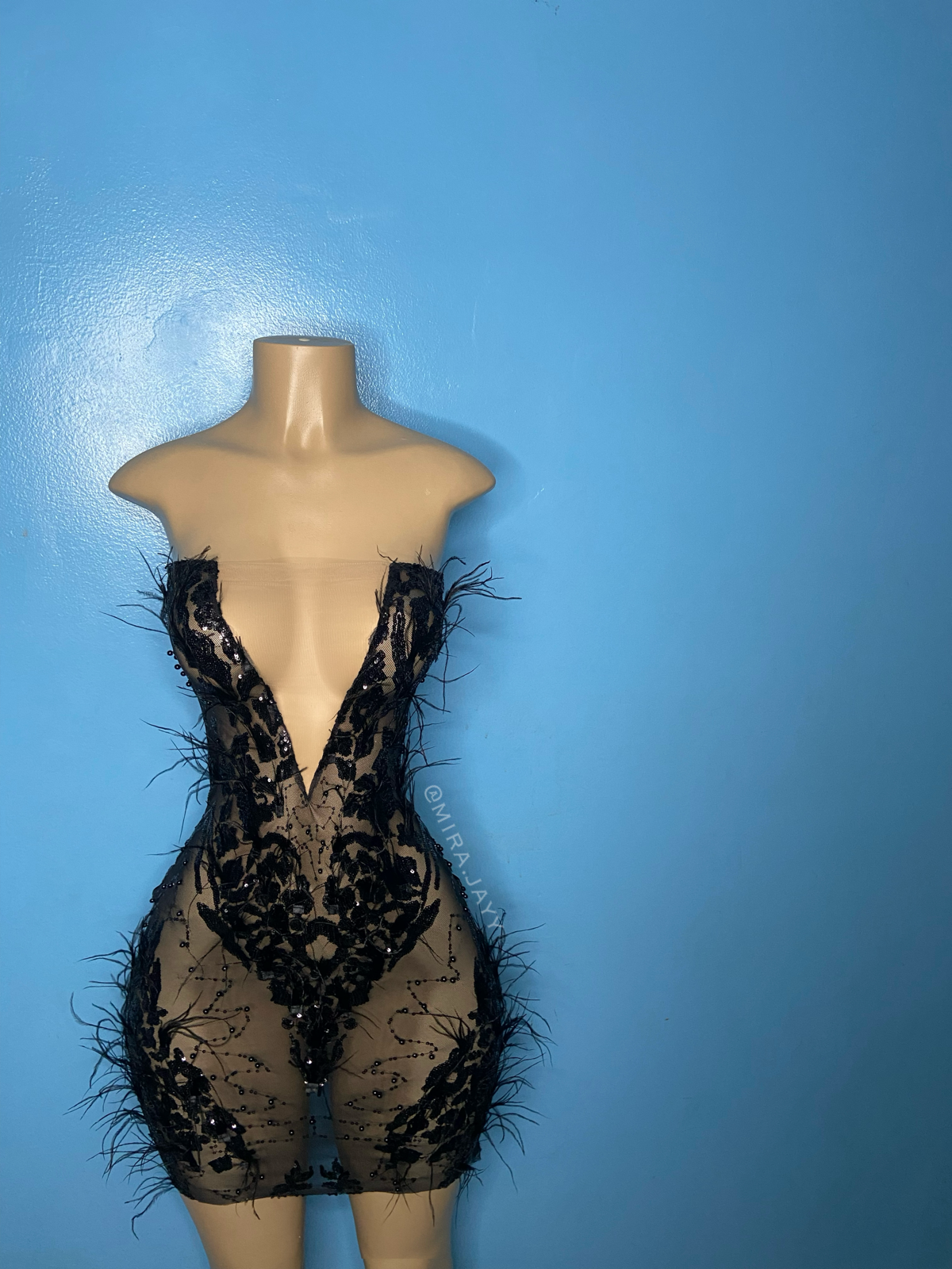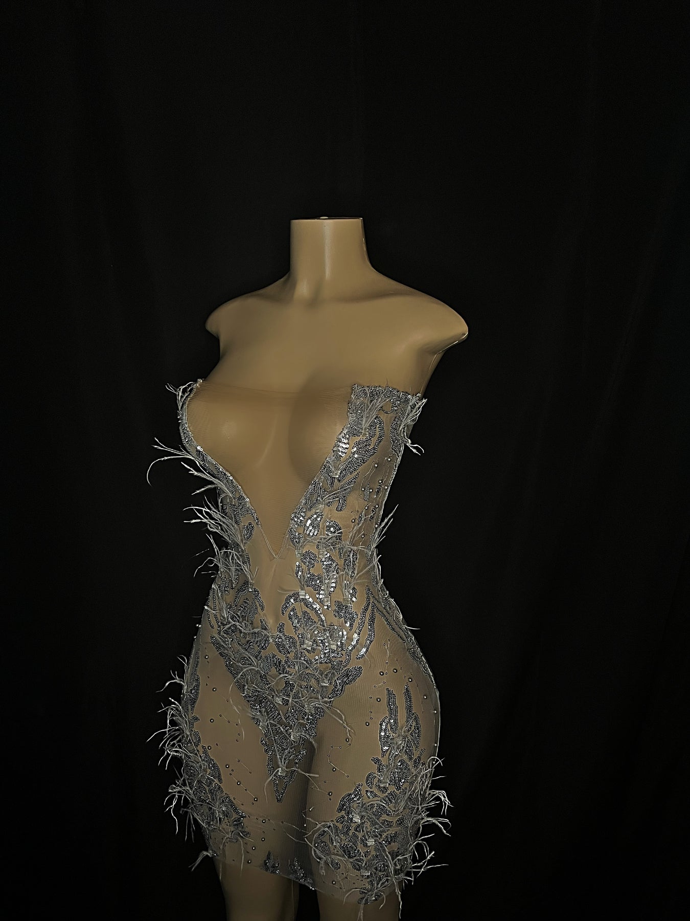 Our limited edition Ami dress is made using shimmering sequin, pearl beaded and ostrich feather fabric. This mini dress guarantees you’ll stand out from the crowd and have all eyes on you. Perfect for any special occasion, don't miss out on this limited edition upgrade!